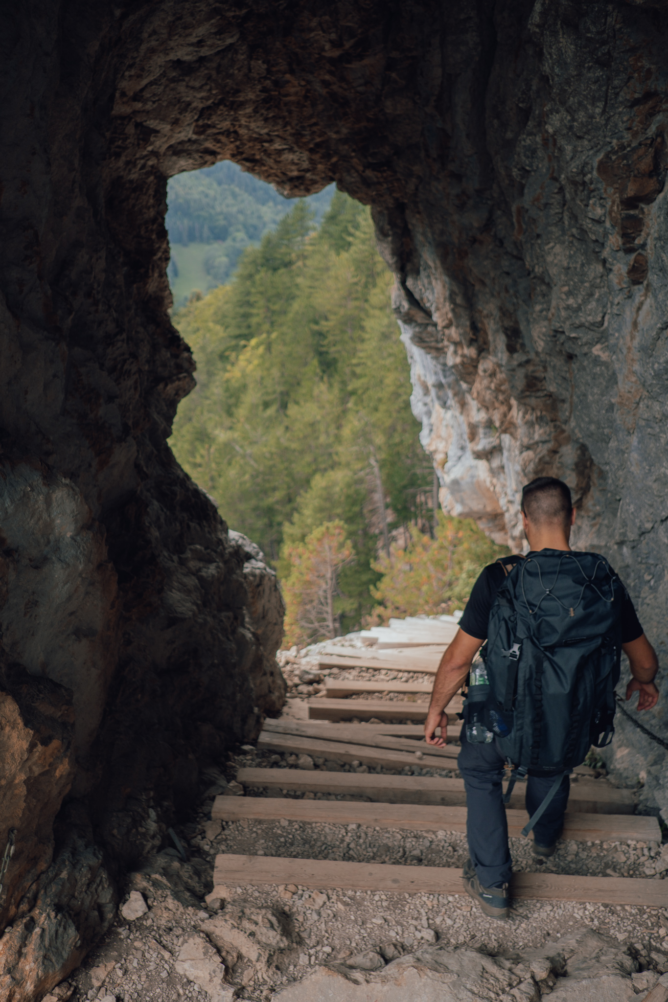 Cet escalier aussi splendide qui soit, offrant une vue splendide sur les alentours passe également dans une arche rocheuse sculptée dans la falaise, ce qui embelli encore plus l’endroit.