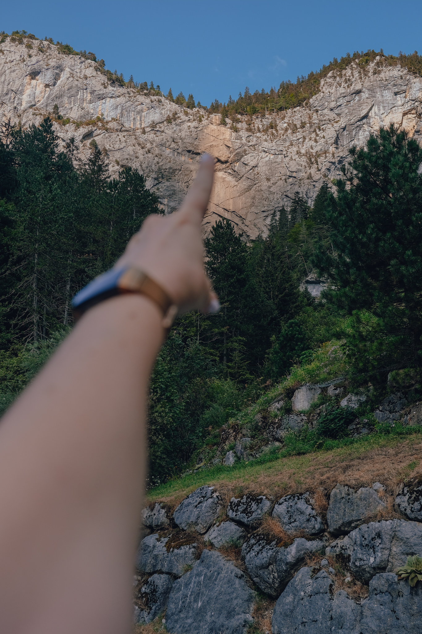 L’itinéraire commence au lieu-dit de Pont de Pierre, au pied de la cascade du Pas du Roc (qui était à sec complet le jour de notre randonnée mi septembre), le long de la route qui monte de Thorens-Glières au Col des Glières. Vous verrez, il est très facile de se garer à cet endroit au vu du nombre de places disponibles au bord de la route.
