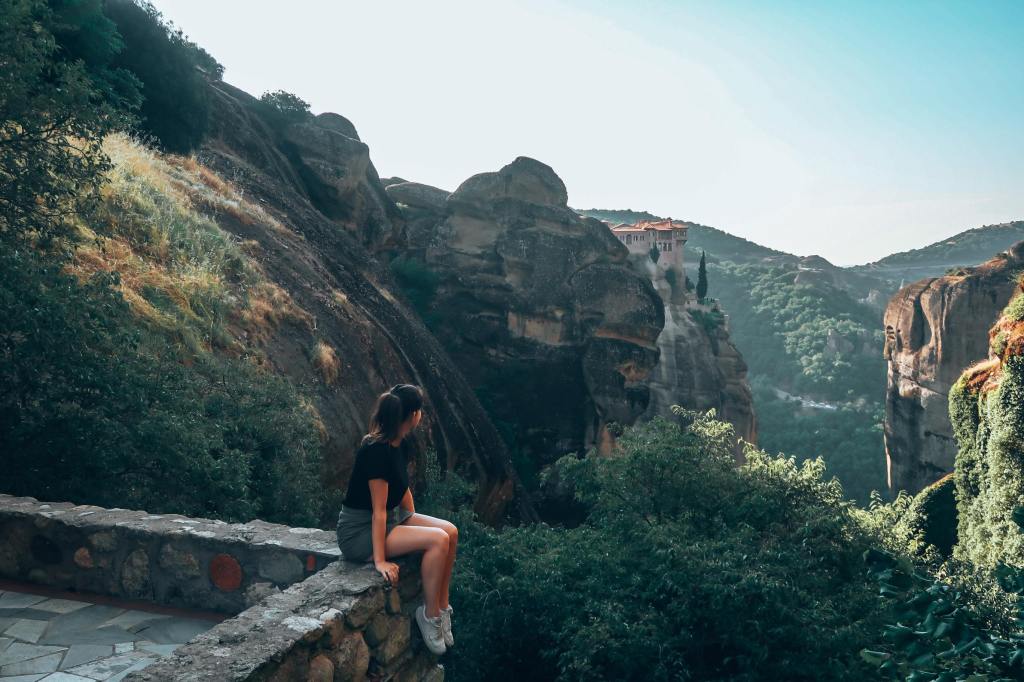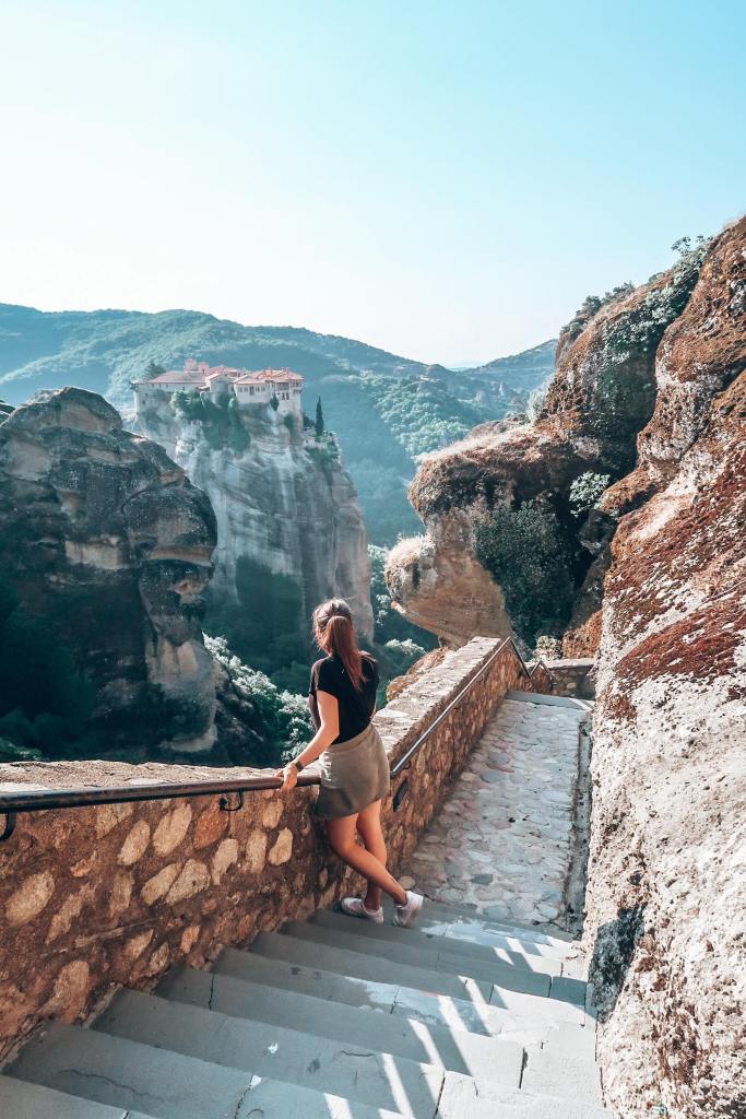 Nous avons ensuite repris la route pour rejoindre le Grand Météore, le plus grand des 6 monastères encore accessibles. Sur la route, nous nous arrêtions tous les 100 mètres tellement chaque point de vue était sublime , notamment au niveau du panorama au dessus du monastère de Rousanou. Ici d’ailleurs, nous avons eu la chance de croiser Myriam, qui tenait également un blog à l’époque. Elle nous a alors embarqué avec elle afin de nous conduire au Grand Météore plus rapidement. Cela nous a notamment permis d’être les premières arrivées sur le lieu.