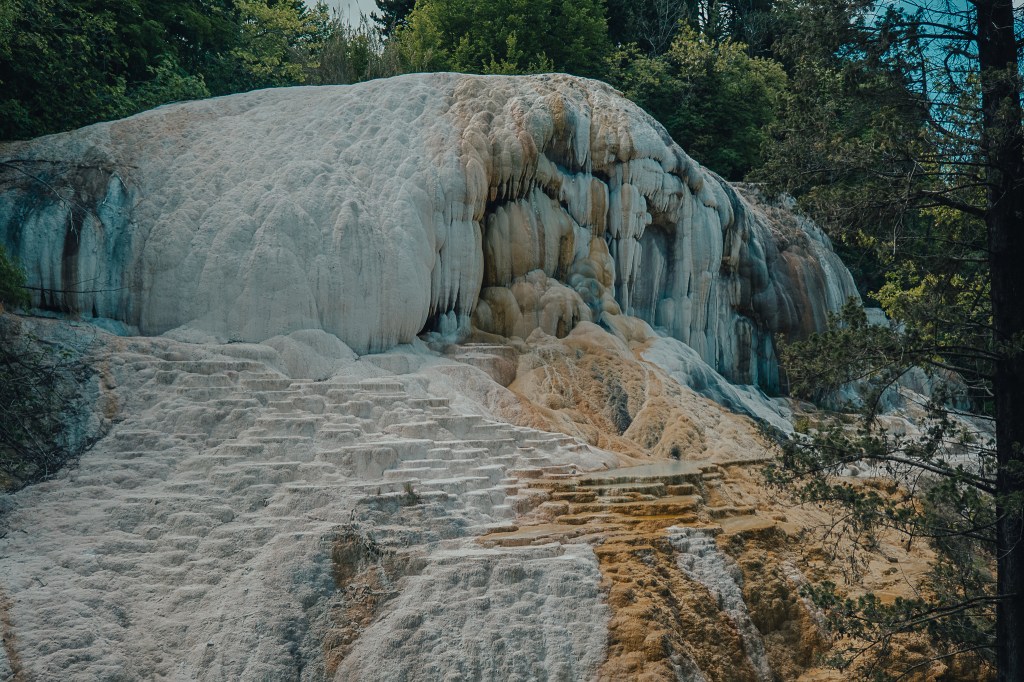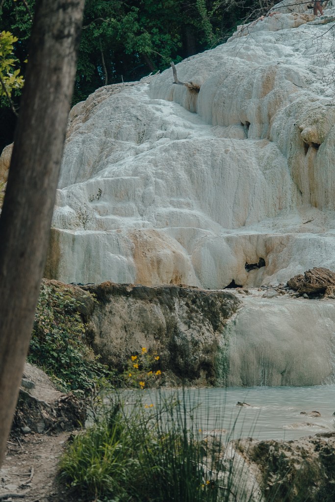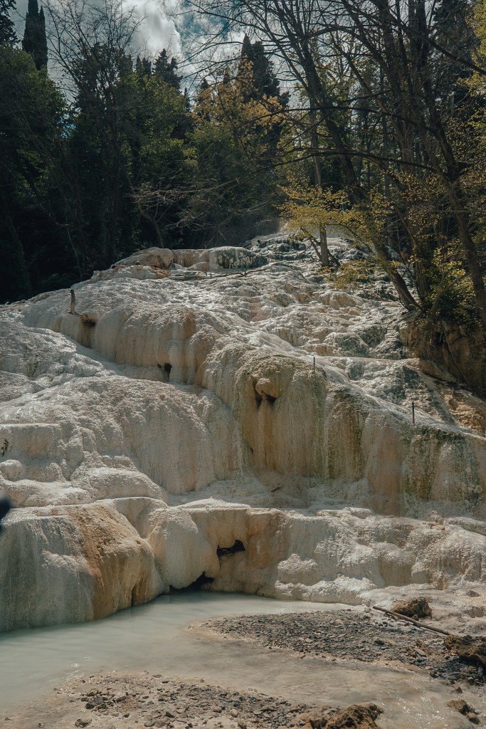 L’endroit le plus impressionnant est le grand gisement de calcaire. Il forme un gros rocher blanc appelé « Fosso Bianco ». C’est depuis son sommet que s’écoule l’eau. Une multitude de cascades d’eau chaude se déversent dans des bassins de différentes tailles, créant ainsi des piscines naturelles.
