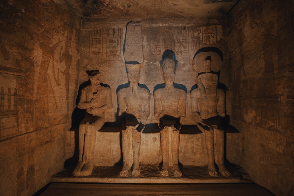En effet, deux fois par an, les 21 février et du 21 octobre, les rayons du soleil pénètrent dans le sanctuaire et illuminent trois des quatre statues assises à l’intérieur. Amon-Rê, Ramsès II et Rê-Horakhty s’illuminent alors que Ptah reste dans l’obscurité. Il n’est jamais atteint par les rayons du soleil car considéré par les anciens égyptiens comme un dieu des ténèbres.