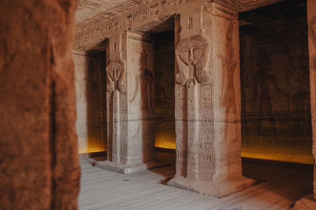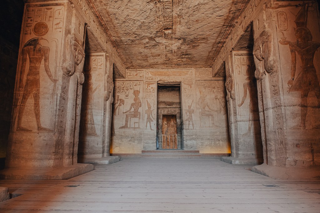 Le petit temple, dédié à la déesse Hathor et à Néfertari pour rappel, est tout aussi captivant. À l’intérieur, les murs sont décorés de scènes où la reine et le pharaon interagissent avec les dieux, renforçant leur statut divin.