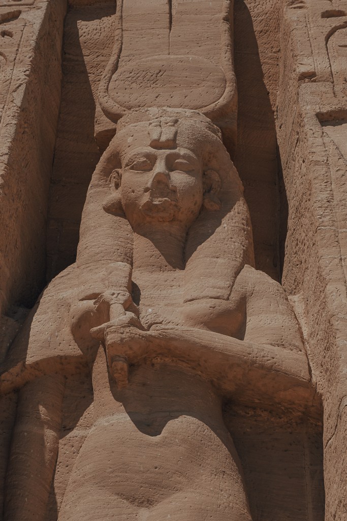 Le second temple, qui se trouve à quelques mètres de là, est dédié à sa reine bien-aimée, Néfertari. C’est l’une des rares fois dans l’histoire de l’Égypte ancienne qu’un temple est dédié à une reine. Il est plus petit que le premier, et, bien que dédié à sa favorite, on retrouve Ramsès II encore. En effet, sur les 6 statues colossales qui composent la façade, 4 d’entre elles le représentent lui.