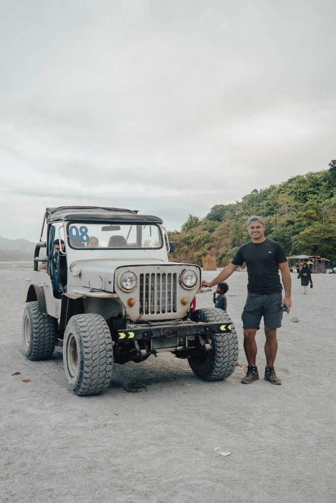 Vers 5h30, on embarque dans un 4×4 tout-terrain, en petit groupe. Et nous voilà partis pour environ une heure de trajet. Au début, on traverse des plaines de cendres, vestiges de l’éruption de 1991. Le paysage est impressionnant : sols gris et ocre, montagnes dénudées, rivières peu profondes… on a vraiment l’impression d’être sur une autre planète. Et clairement, c’est aussi à ce moment qu’on ne regrette pas d’avoir dit oui au foulard plus tôt. On se mange une tonne de poussière ! On croise aussi quelques locaux également qui vivent là et élèvent leurs animaux.